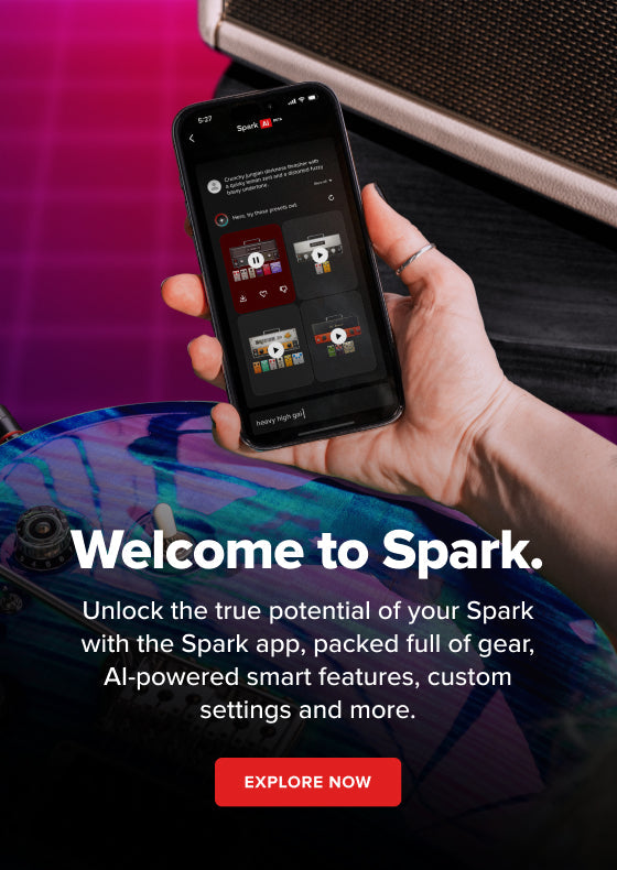 Whether you're just picking up your first chords or diving back into playing, this collection is built to make your journey smooth and enjoyable. Explore portable amps like Spark GO and MINI, level up with the powerful Spark 2, and enhance your experience with smart accessories—all seamlessly connected through the Spark App. Easy to use, fun to play, and made to grow with you.