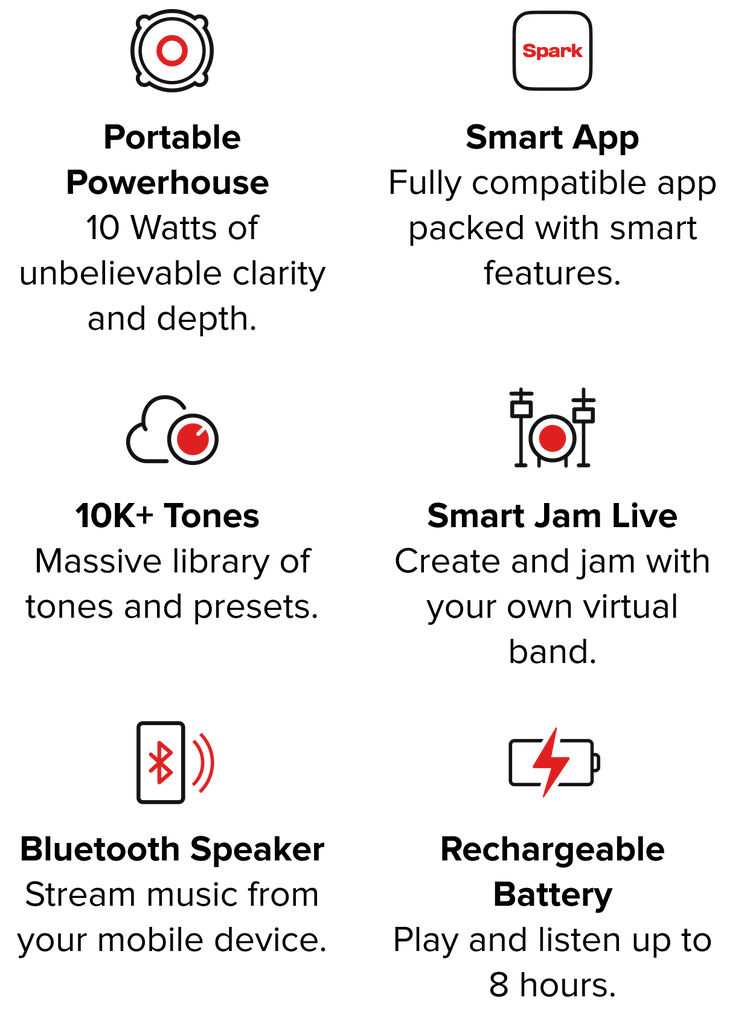 Take your tone anywhere with Spark MINI, a rechargeable battery-powered guitar amp and Bluetooth speaker with smart app integration and multi-dimensional sound.