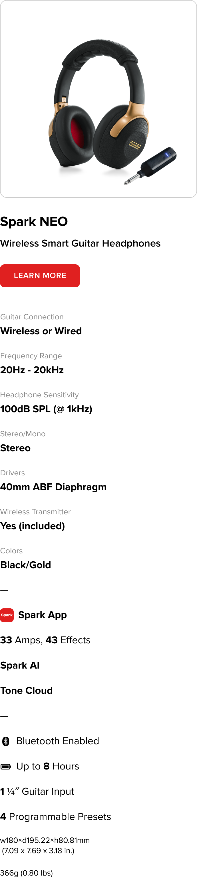 Spark NEO is your full guitar rig—built into a pair of premium headphones.