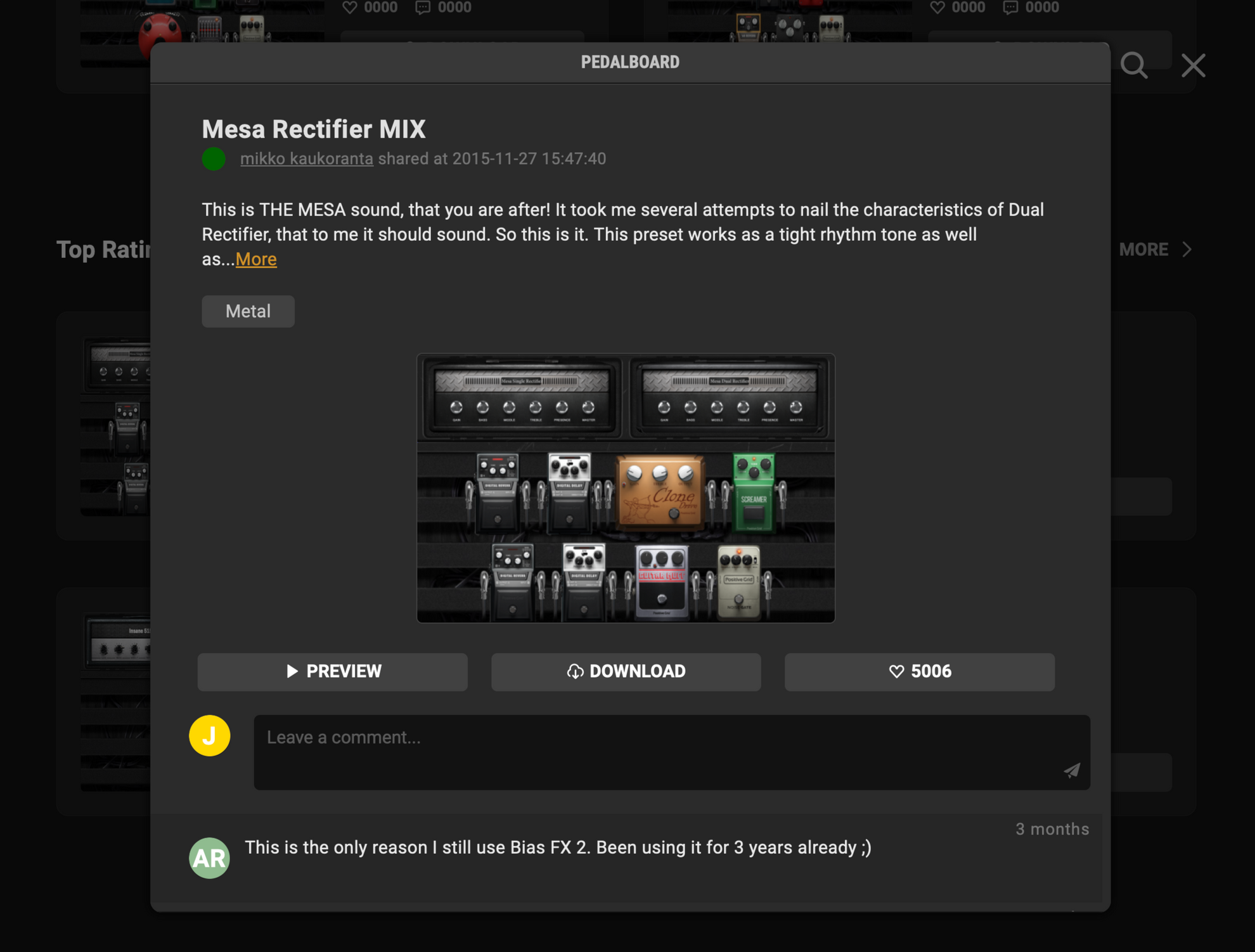 Grab the setup you need with searchable custom presets for amps, pedals and pedalboards. Or use them as starters for your own tone-shaping. Dive into the ever-expanding ToneCloud® online community, now with a new graphic interface, easier search, tone topics, playlists and so much more. Share the direct link to your tones for others to try.