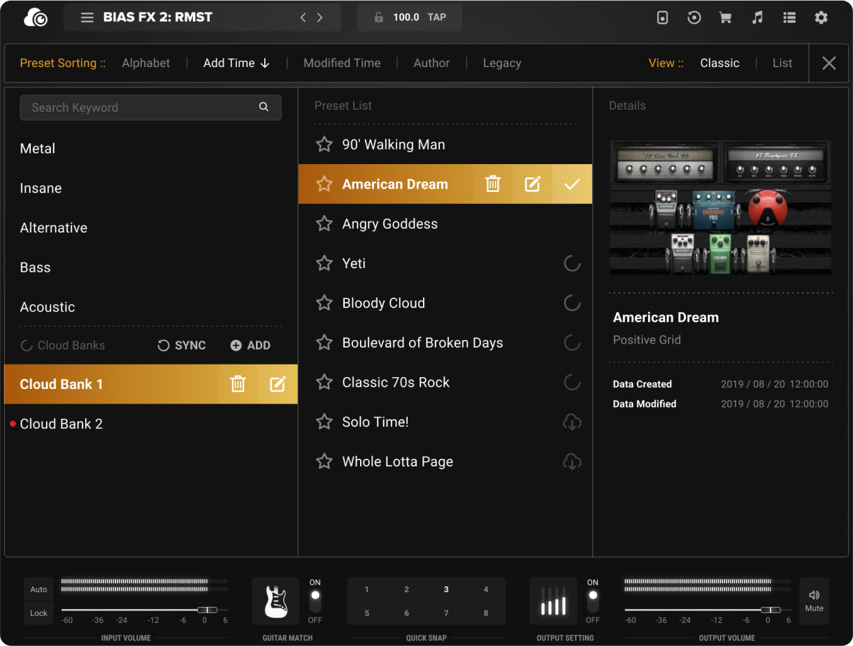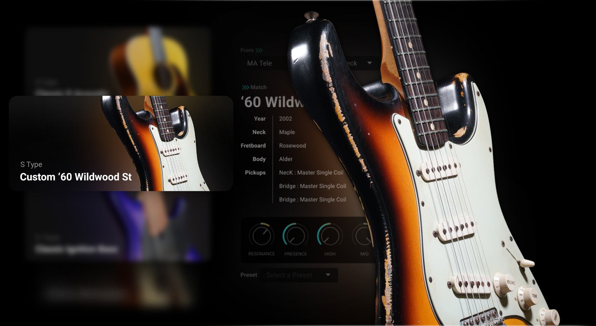 With Guitar Match you can turn your guitar—any guitar—into a collection of legendary guitar models, including our all-new Acoustic and Bass. Each is precisely recreated down to their pickups, body type, and unique tonal characteristics. Now dial in that tone faster than ever with Guitar Match Quick Mode.